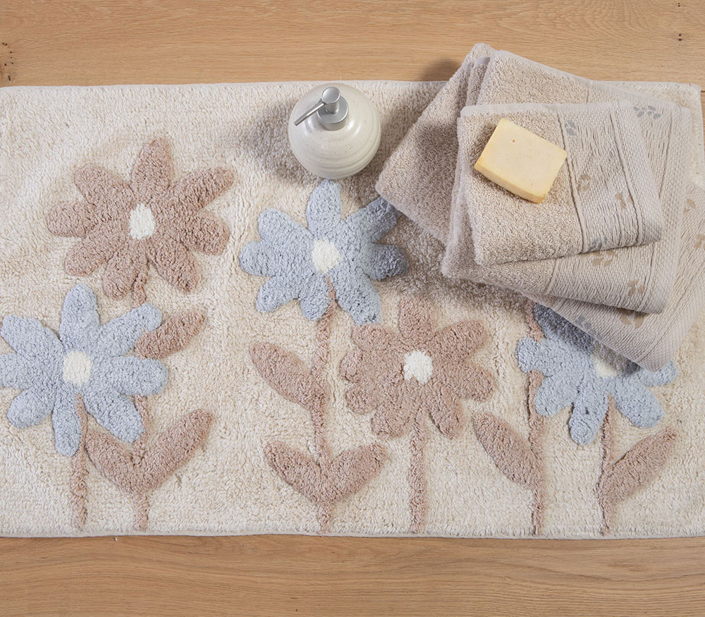 Χαλάκι μπάνιου κατασκευασμένο από 100% βαμβάκι, διάστασης 50×80 και βάρος 1750gr/m2.