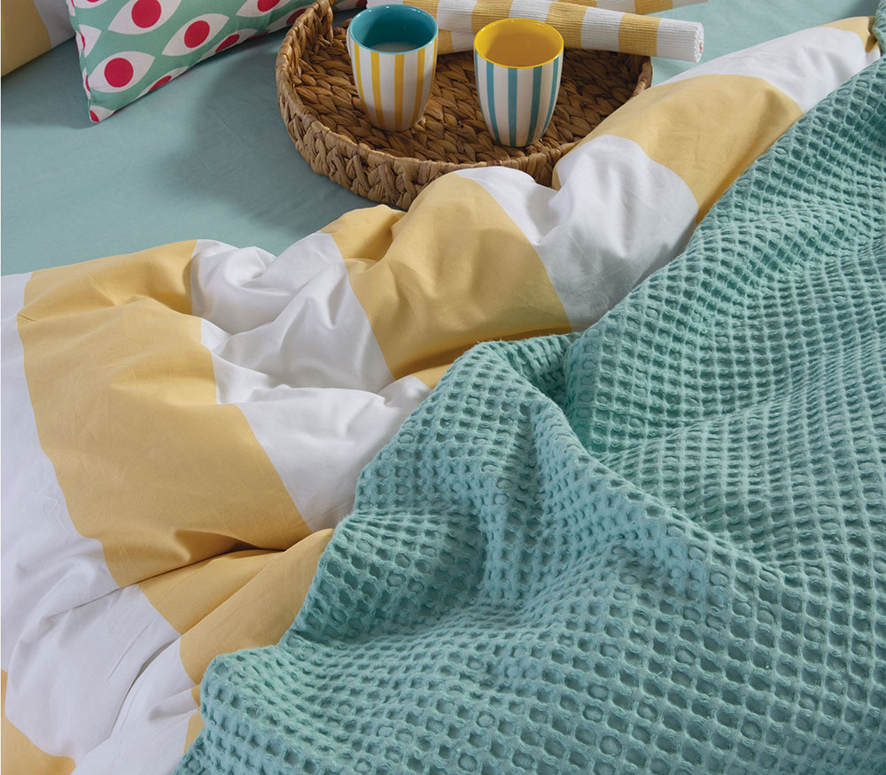 Η νέα πικέ 100% βαμβακερή κουβέρτα μας (διάστασης 220×240) New Golf, εντυπωσιάζει με το βελουτέ φινίρισμά και την απαλότητα της, λόγω της ιδιαίτερης επεξεργασίας Garment Wash.