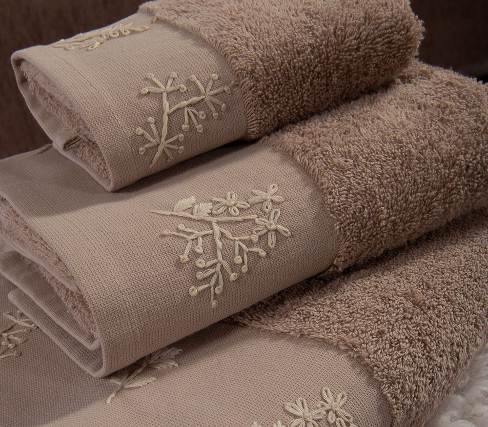 Το σετ περιλαμβάνει μια πετσέτα χεριών 30x50cm, μια πετσέτα προσώπου 50x90cm και μια πετσέτα μπάνιου 70x140cm.