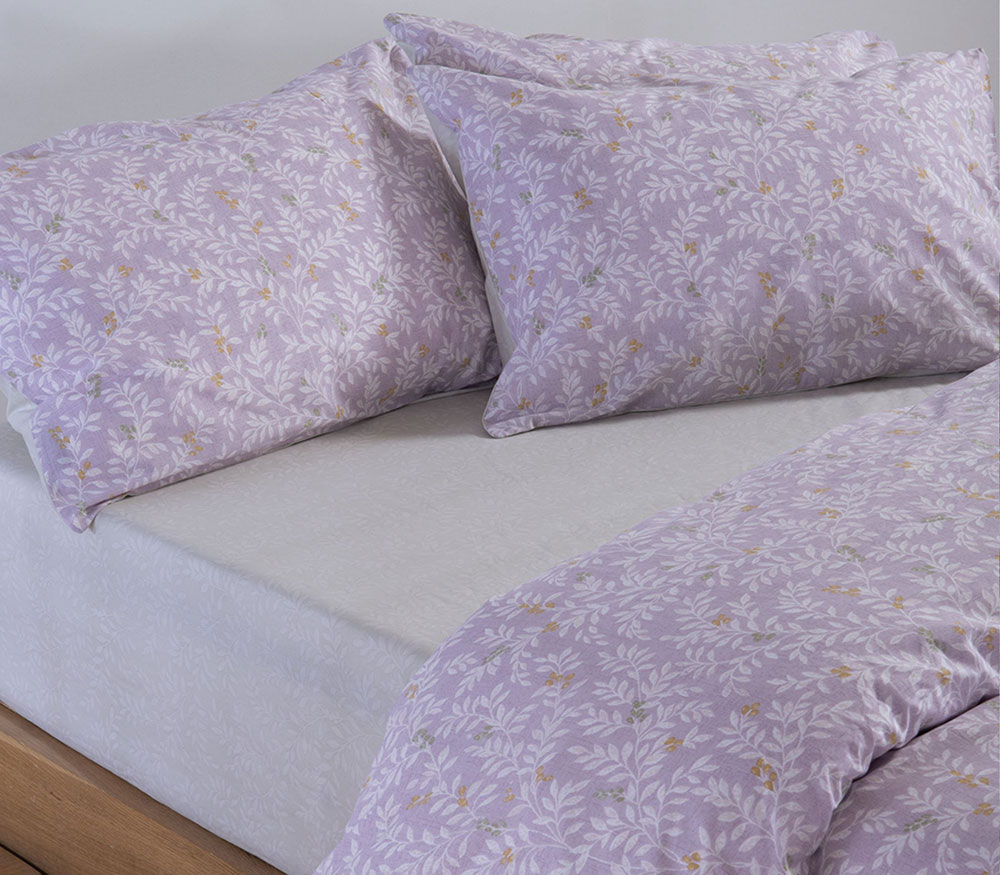 Το σετ περιλαμβάνει ένα πανωσέντονο σε διάσταση 270x270cm, ένα κατωσέντονο με λάστιχο διάστασης 180×200+35cm και δύο μαξιλαροθήκες 52x72cm.
