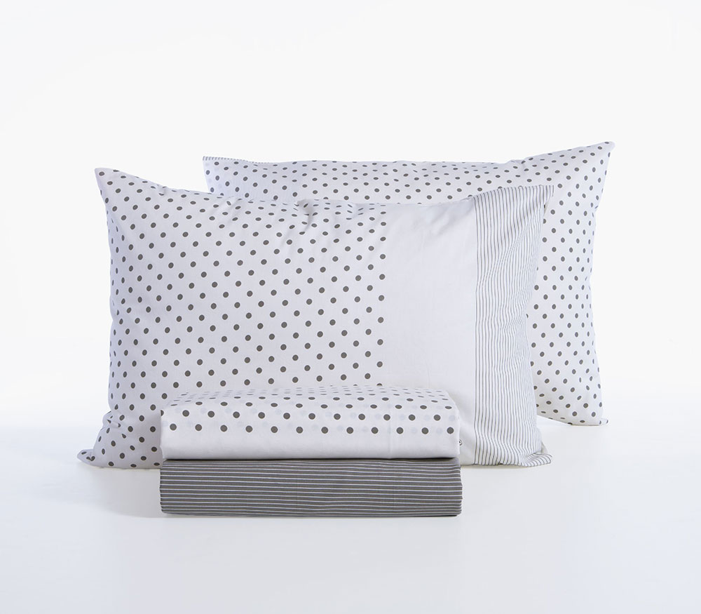 Το σετ περιλαμβάνει ένα πανωσέντονο 170x270cm και ένα κατωσέντονο διάστασης 100×200+35cm και μία μαξιλαροθήκη 52x72cm.