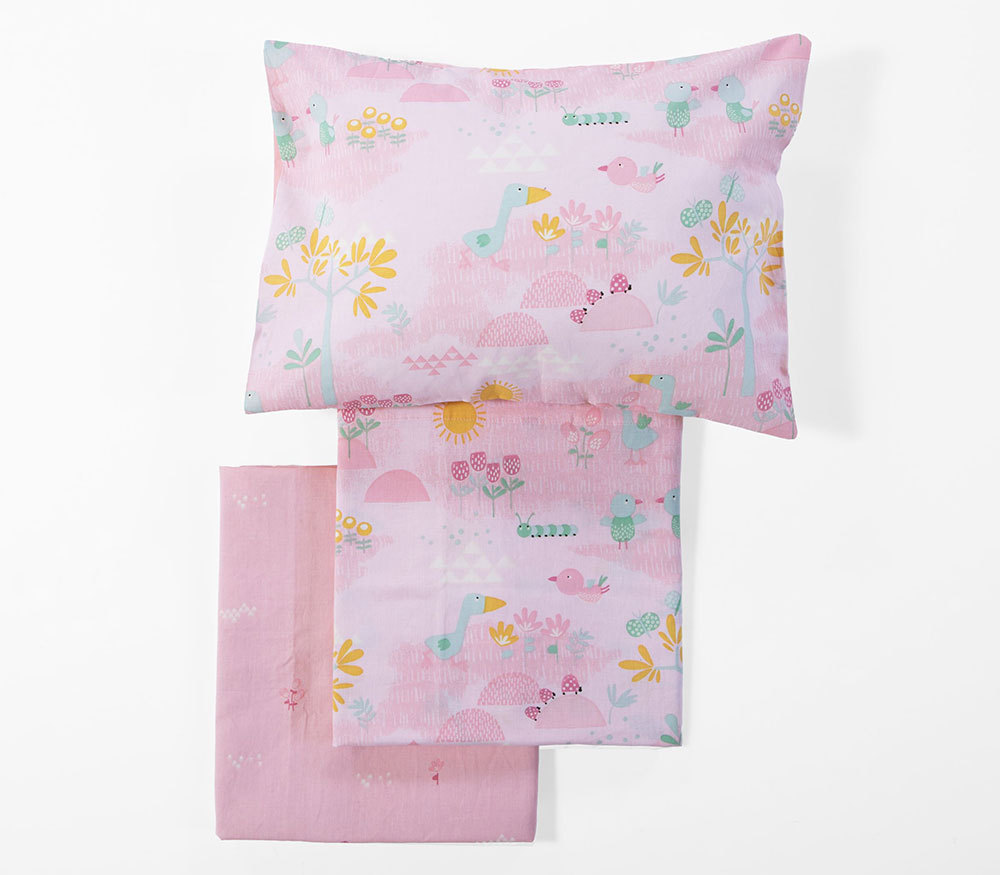 Το σετ περιλαμβάνει ένα κατωσέντονο και ένα πανωσέντονο διάστασης 120x170cm και μία μαξιλαροθήκη διάστασης 30x40cm.