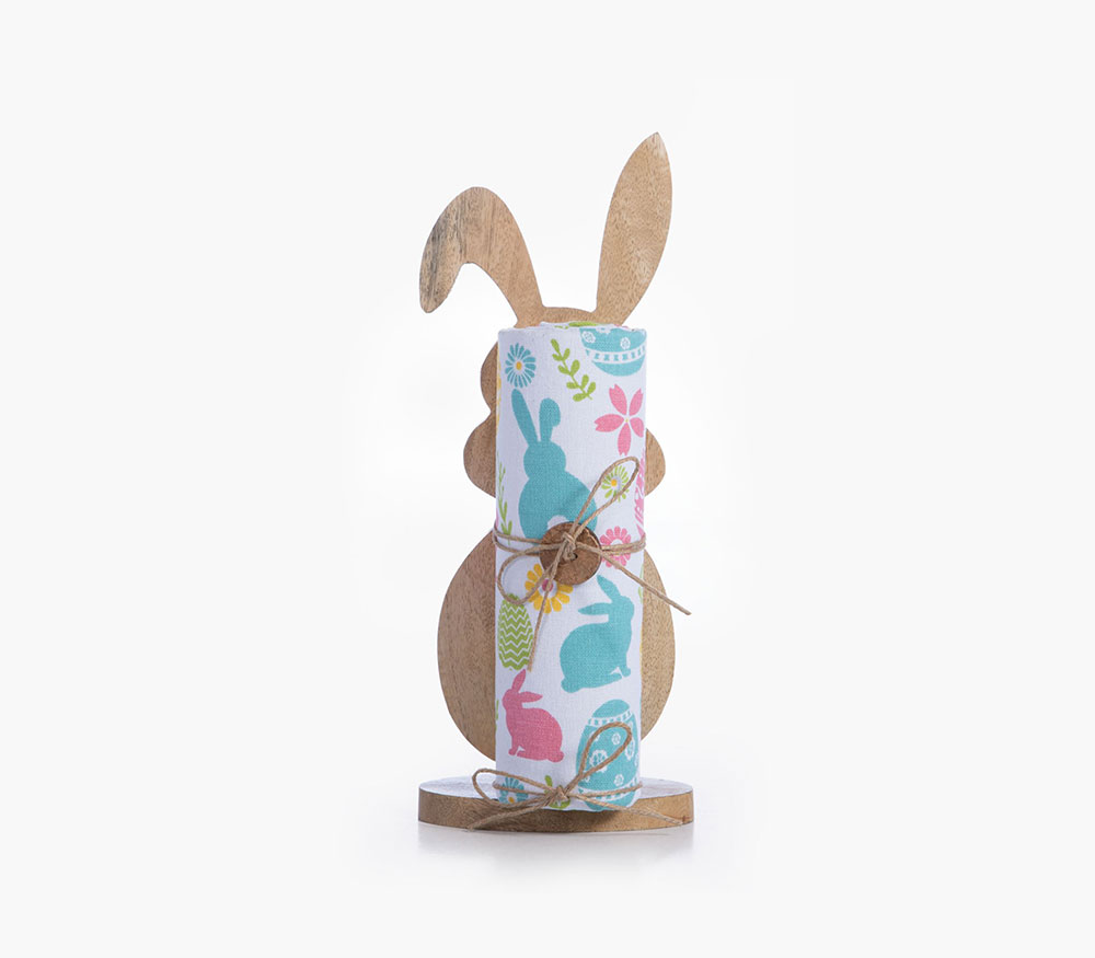 Ξύλινος λαγός με ποτηρόπανο διάστασης 40x70cm.